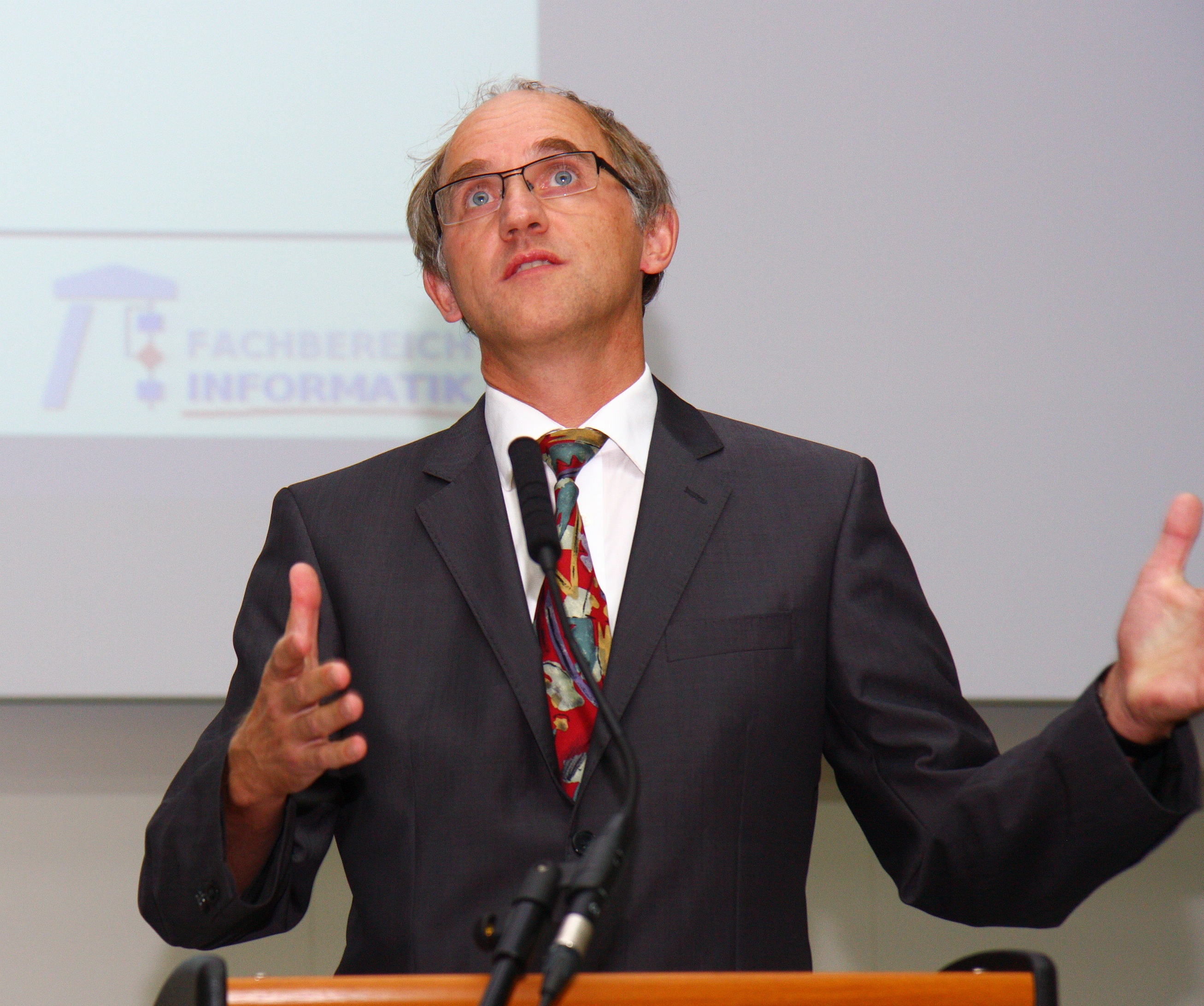 In seiner Begrüßungsrede stellte der Dekan Prof. Dr. Poetzsch-Heffter die Entwicklung und Erfolge des Fachbereichs im abgelaufenen akademischen Jahr vor.