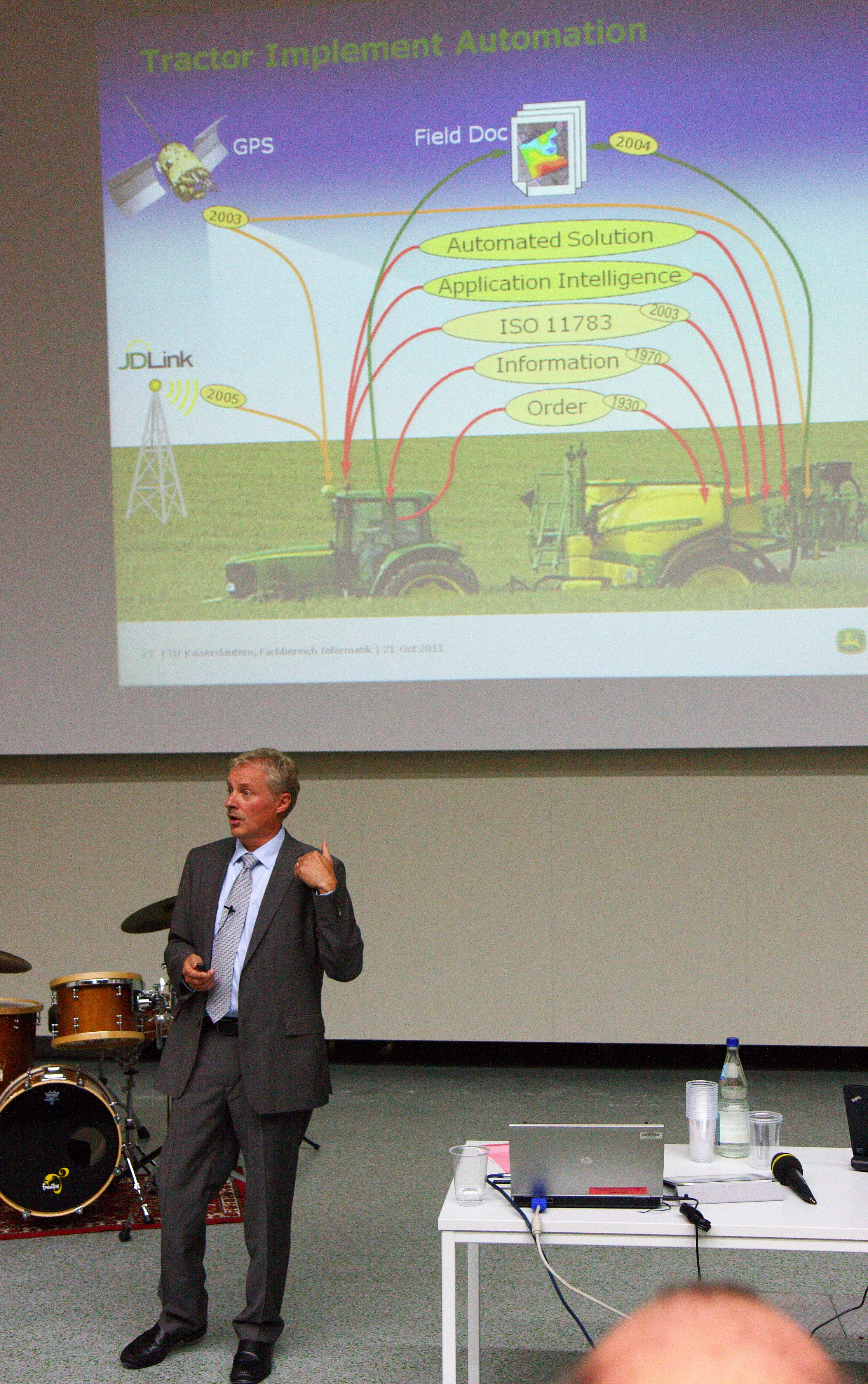 Nach einer Vorstellung durch Prof. Dr. Rombach folgte als einer der Haupt-Programmpunkte der Gastvortrag "Software Engineering außerhalb der IT-Branche am Beispiel der Landtechnik" von August Altherr, Direktor des europäischen Technologie- und Innovationszentrums von John Deere in Kaiserslautern