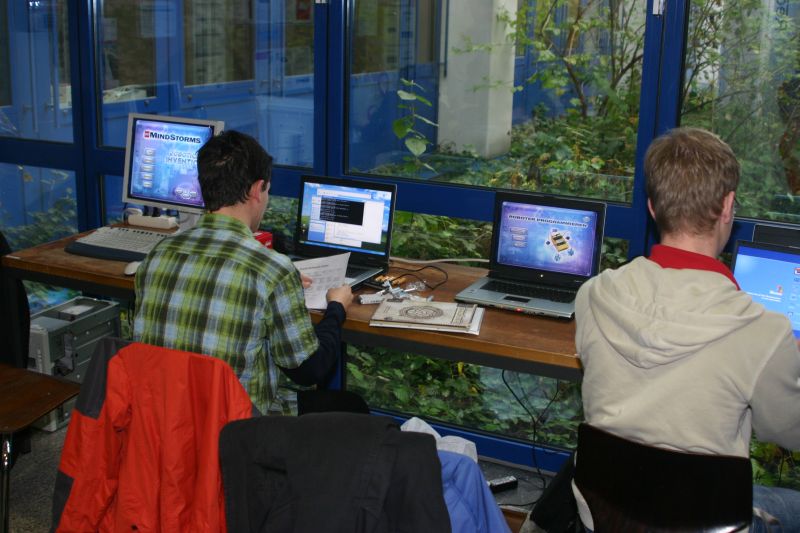 Einige Schüler beim Feintuning ihrer Roboter-Software für den Wettbewerb