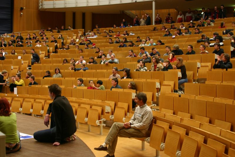 Schüler und Lehrer im Audimax bei der Endausscheidung des Wettbewerbs