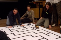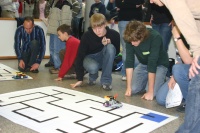 Einige Schüler bei letzten Tests an ihren Robotern für den Wettbewerb